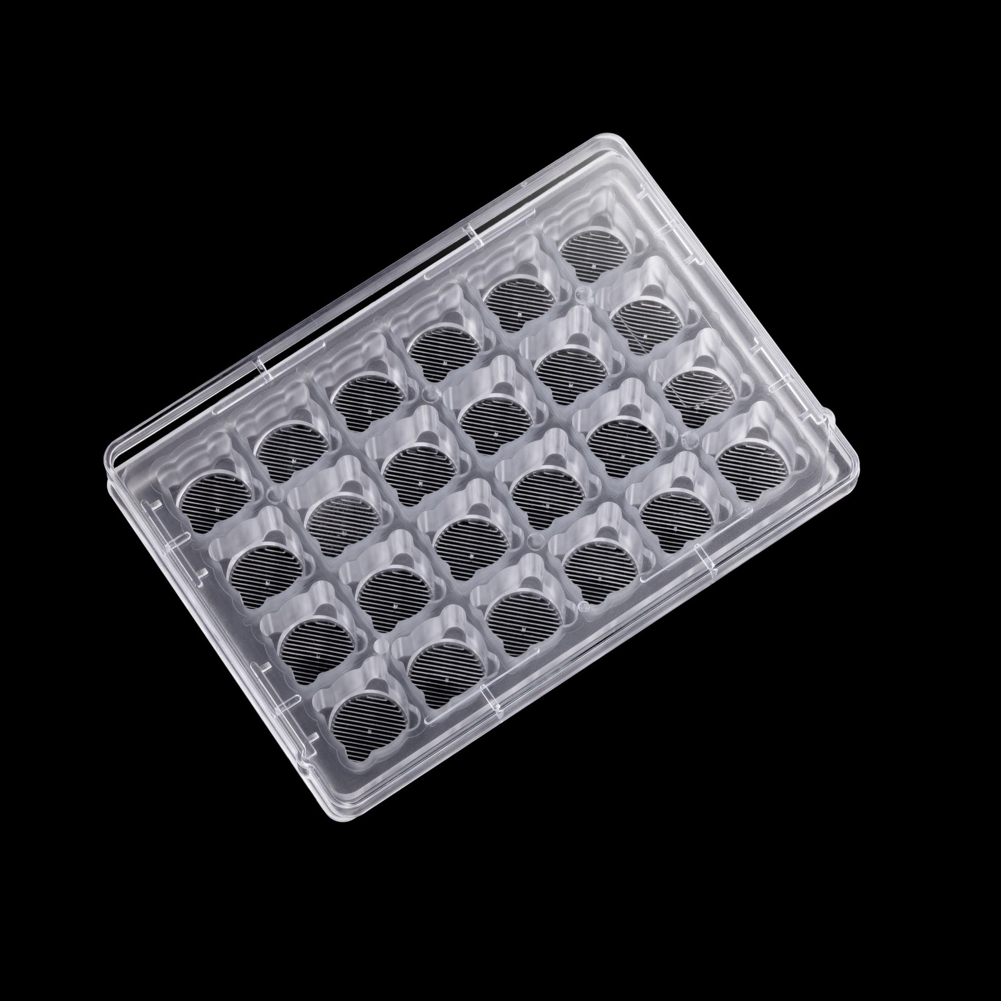 Each plate consists of an oxygen-permeable insert for cell growth made from medical-grade material, with a polystyrene lid and base plate.